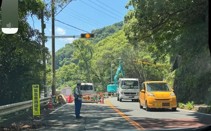 災害復旧のため、昨年9月より片側交互通行となっていた
