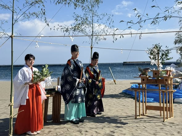 当番町である浜町の皆様、近隣町内会の皆様、そして第一分団の皆様におかれましては、早朝より準備にご尽力いただき、誠にありがとうございました。感謝です最後は、本日の神事を催行してくださいった来宮神社雨宮盛克宮司様とツーショット