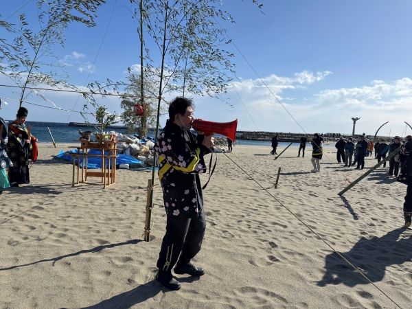 私も長年参加させていただいておりますが、これほど強い風は初めてで、目や耳に砂が入