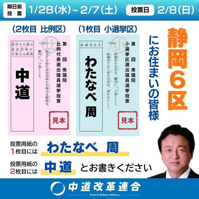 2026.01.31 裏金問題、統一教会、国保逃れ、連立与党だった公明党が政権離脱するのも当然です。 裏金問題、統一教会、国保逃れ、連立与党だった公明党が政権離脱するのも当然です。 中道改革連合は、生活者ファーストの視点で必ず私達の暮らしを今より豊かに、そして安全で安心な日本にしてくれると信じます。 まず、食品消費税はゼロからスタート 静岡第6区は、わたなべ周、比例は中道です。宜しくお願い致します。 Tweet Share Hatena Pocket RSS feedly Pin it 【選挙】わたなべ周氏【中道】に皆様の清き1票をお願い致…前の記事